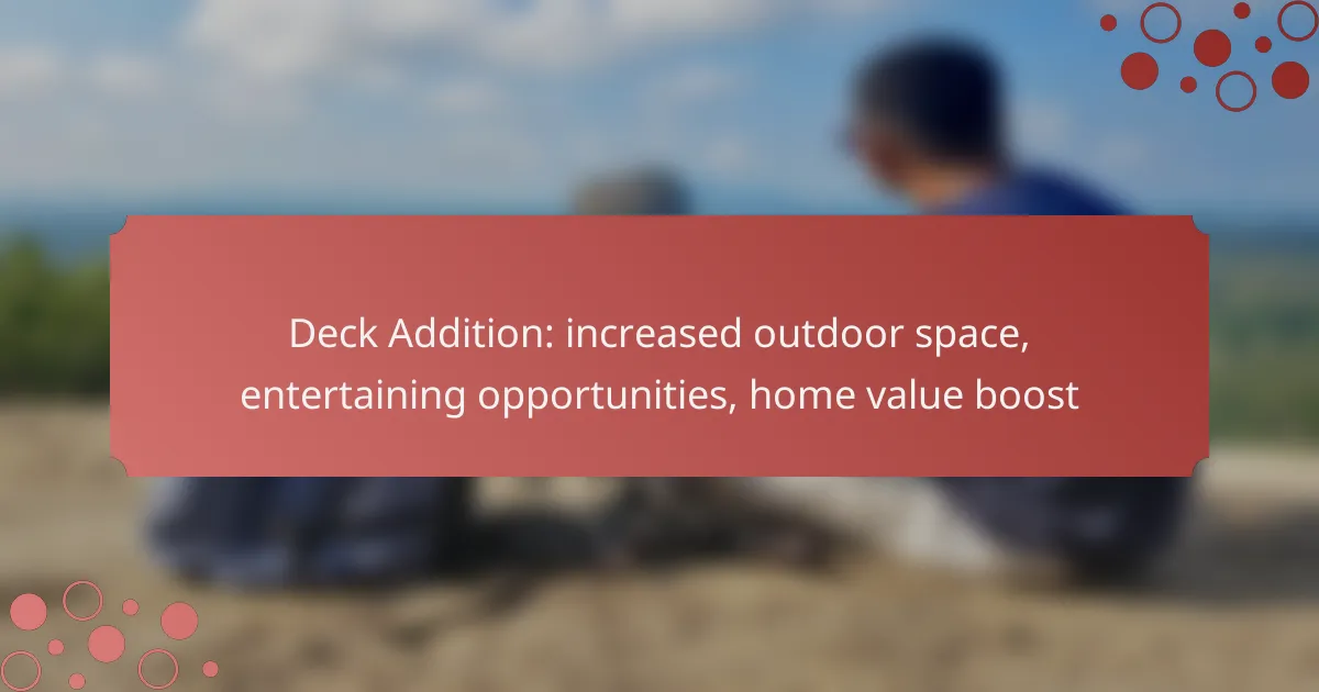 A deck addition significantly enhances outdoor space by providing a dedicated area for relaxation and entertainment. It allows homeowners to enjoy their yards more fully, creating an inviting atmosphere for gatherings and leisure activities.
