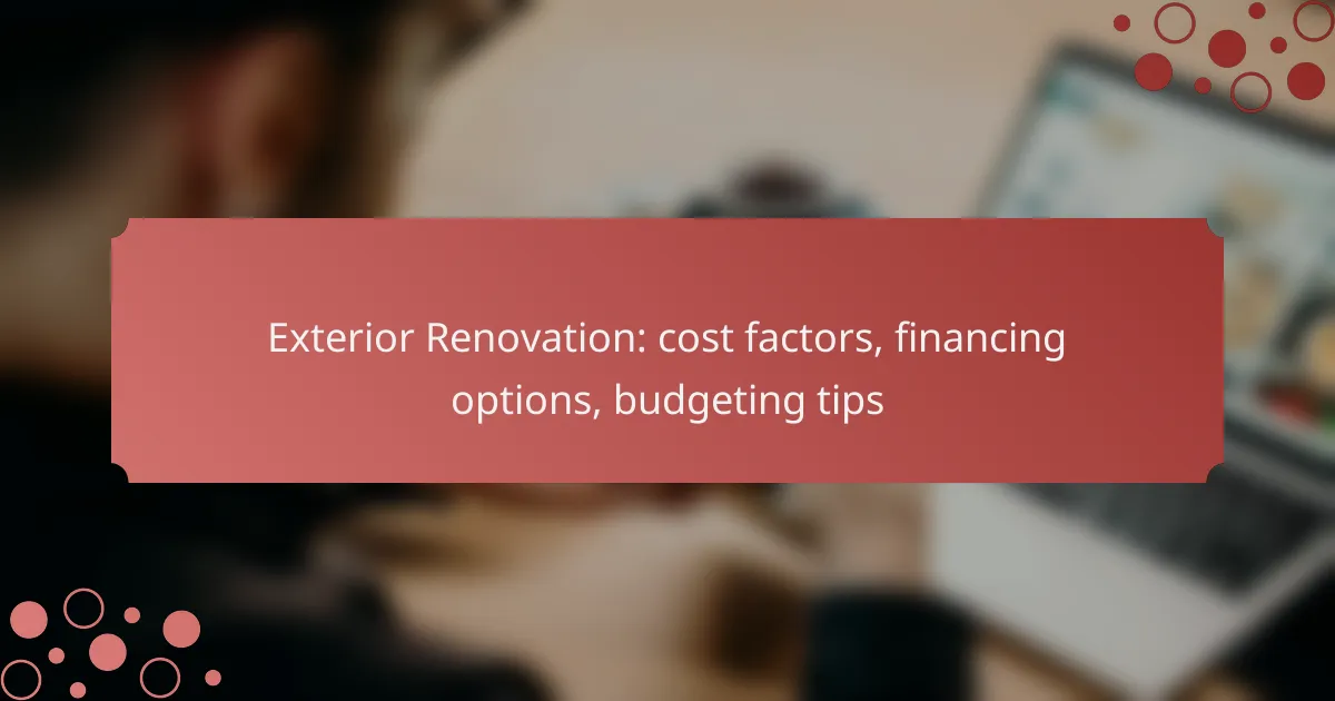 Exterior renovation can significantly enhance the curb appeal and value of your home, but understanding the various cost factors is essential for effective budgeting. Key elements such as material quality, labor costs, and project complexity can influence your overall expenses. Additionally, exploring financing options like home equity loans or renovation mortgages can provide the necessary support to fund your project. By carefully planning your budget and prioritizing your needs, you can ensure a successful renovation experience.